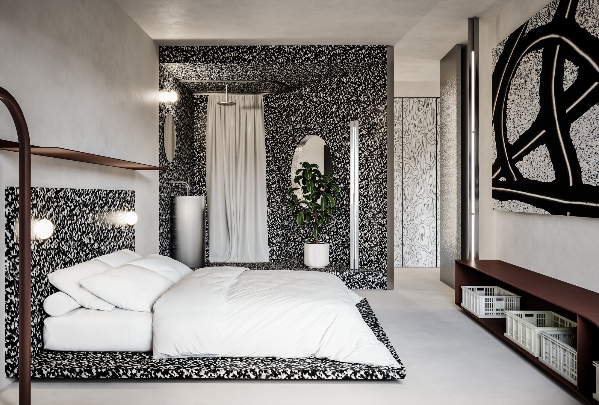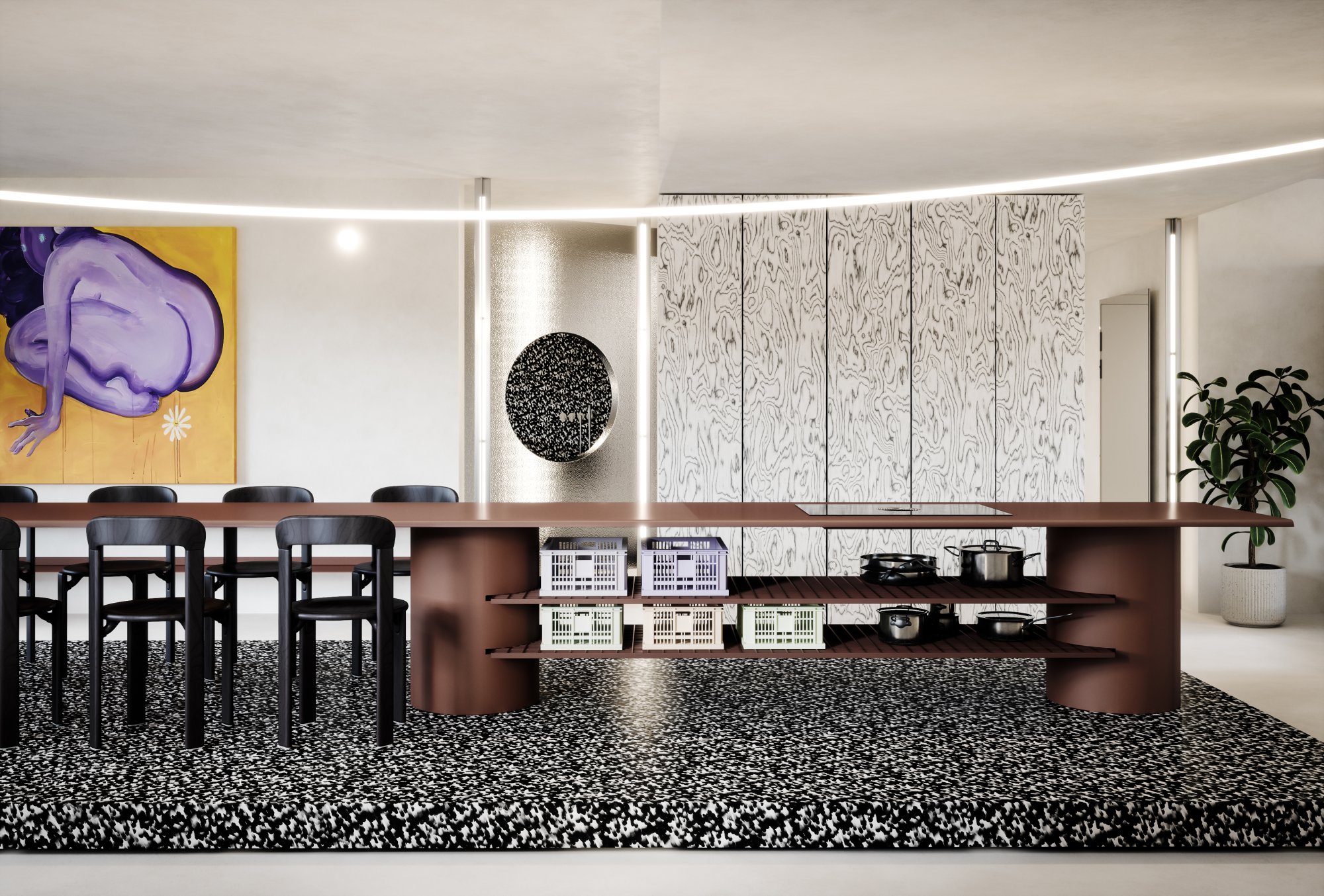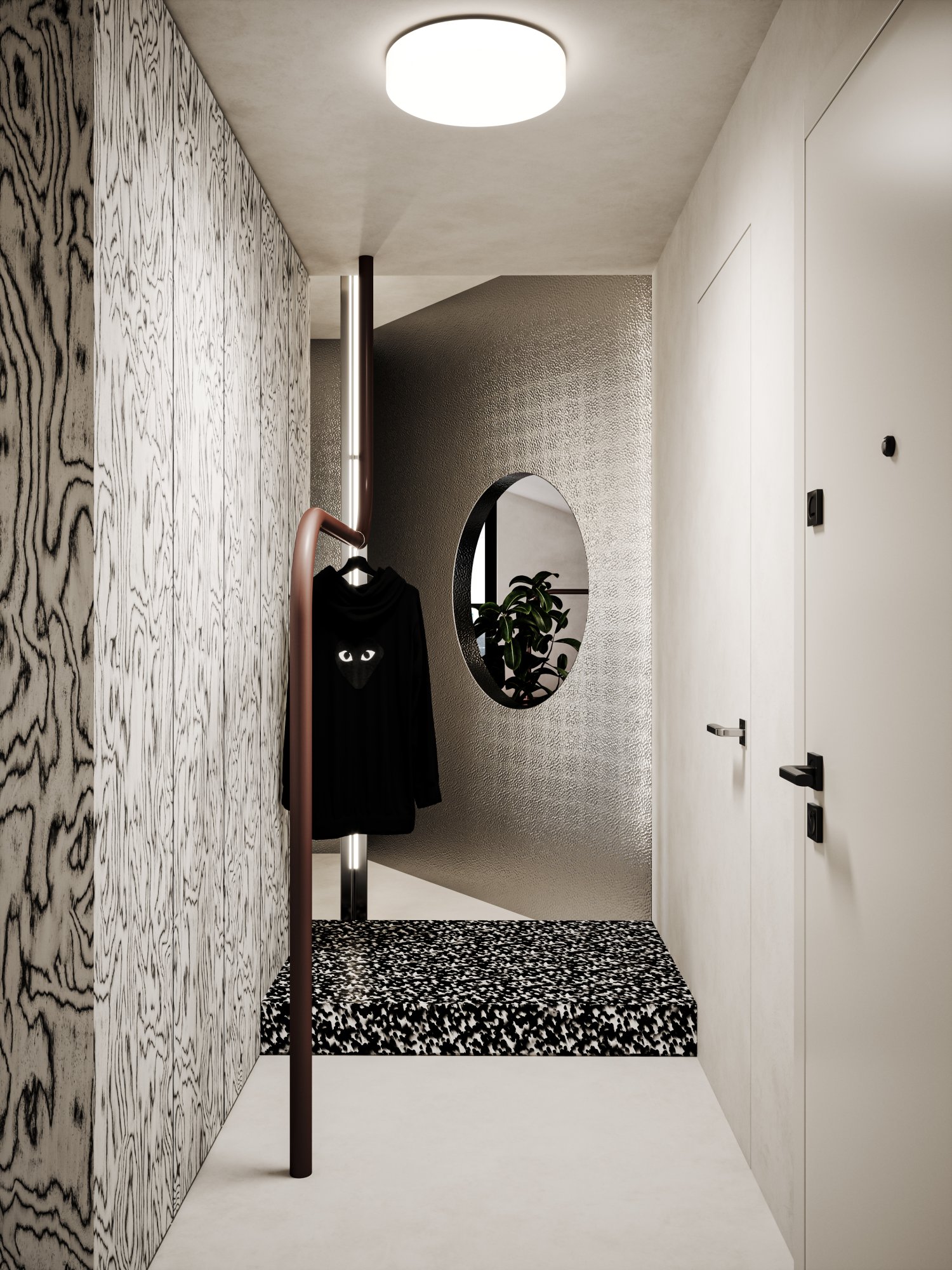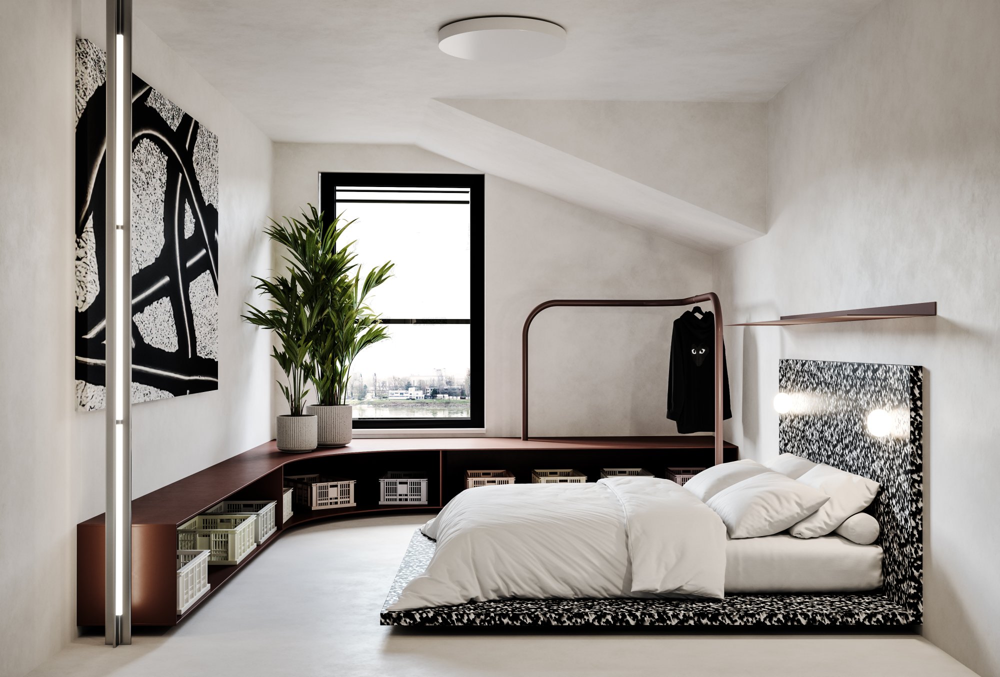 The guiding principle of the design was to avoid conventional compartmentalization. Instead, the apartment maintains a sense of openness by distinguishing the primary zones—day and night activities—using subtle horizontal platforms. This preserves the spaciousness and grandeur of a contemporary loft while offering a seamless transition between different uses. The result is a sophisticated, modern living environment that balances openness with function, emphasizing the luxury of space and the fluidity of modern urban living.